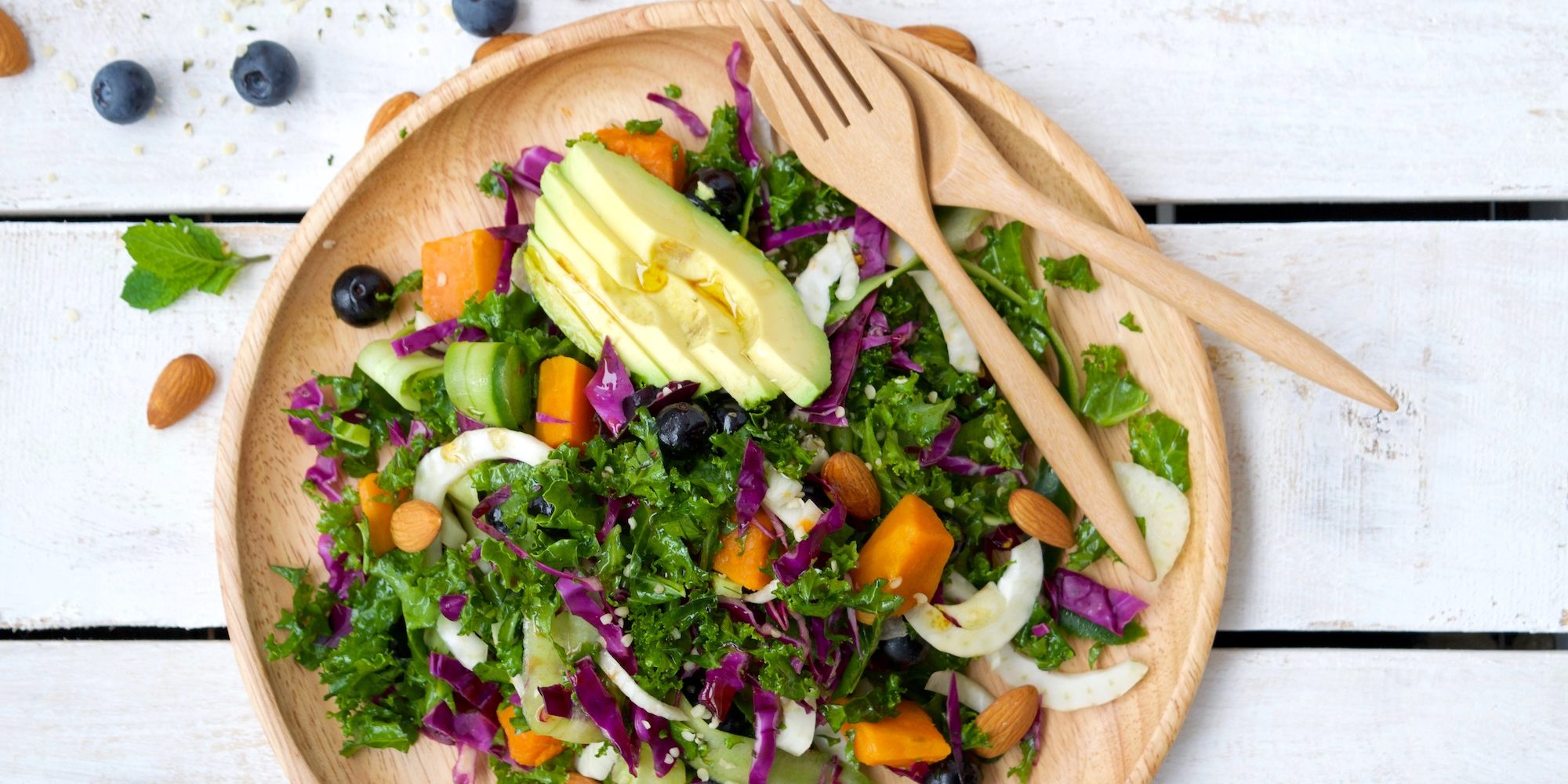 This salad is jam-packed with fresh ingredients well known for their special ‘beautifying’ properties. This flavoursome combination will leave your skin glowing and eyes shining! Avocado, sweet potato, leafy greens, blueberries, almonds, lemon and more. Feel free to mix through some cooked quinoa also if you wish to make it more of a main course.