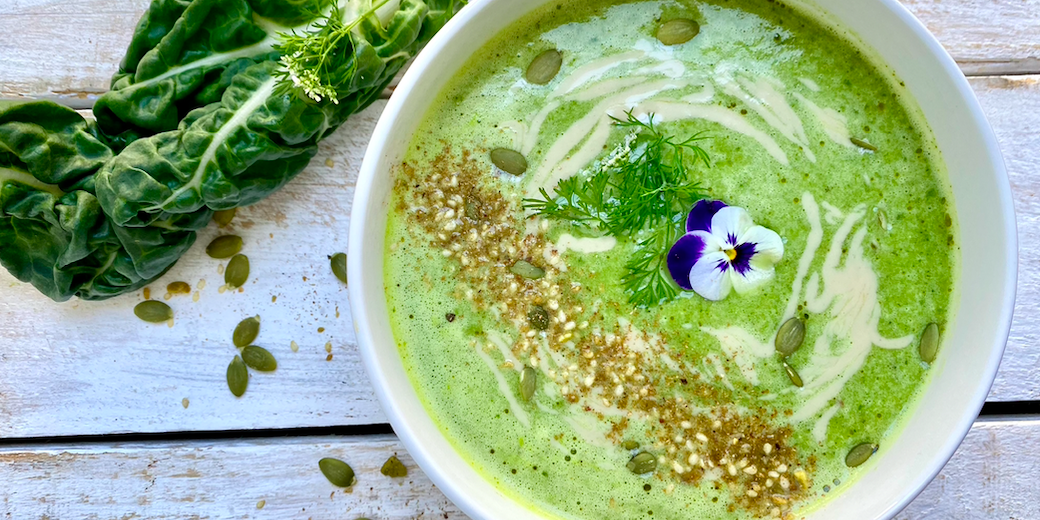 This green soup below is incredibly simple and also very delicious. You’ll be surprised at how tasty a nutrient-dense soup can be! Select whatever leafy greens and fresh herbs you have on hand in the final stage of the soup – it’s very versatile. This soup keeps 3-4 days in the fridge or also freezes well.