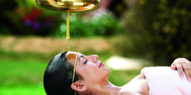 Shirodhara is a form of Ayurveda therapy that involves gently pouring liquids over the forehead and can be one of the steps involved in Panchakarma. The name comes from the Sanskrit words shiro (head) and dhara (flow).